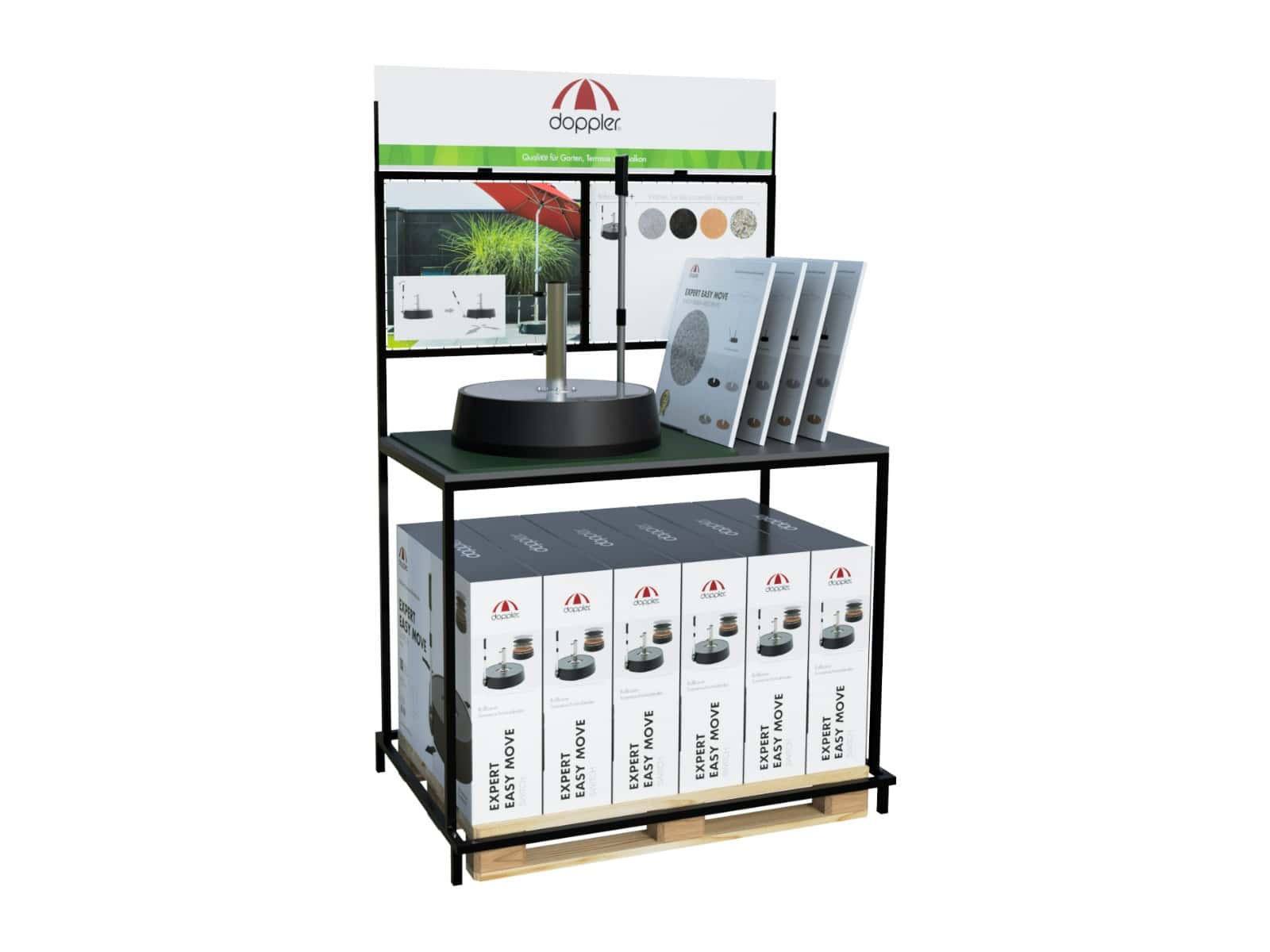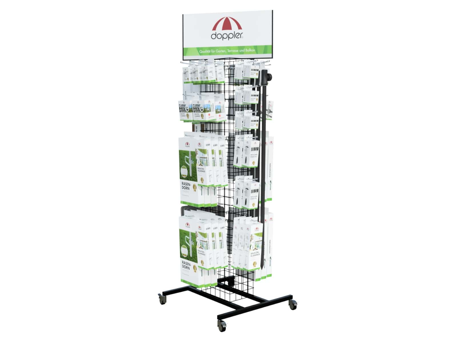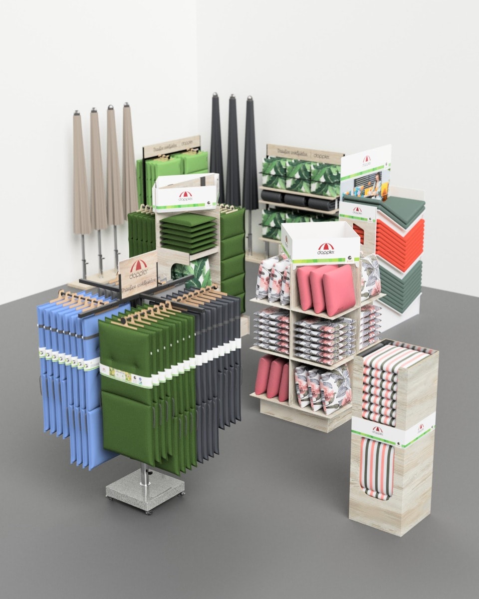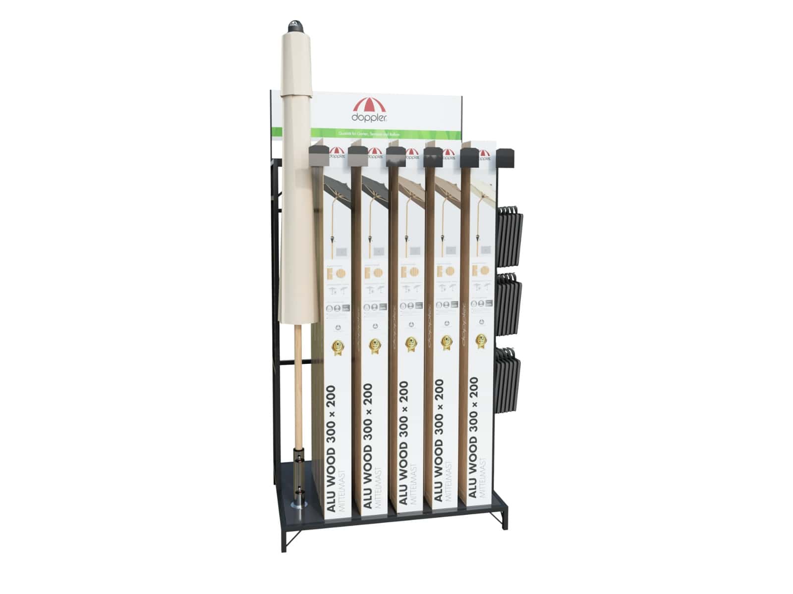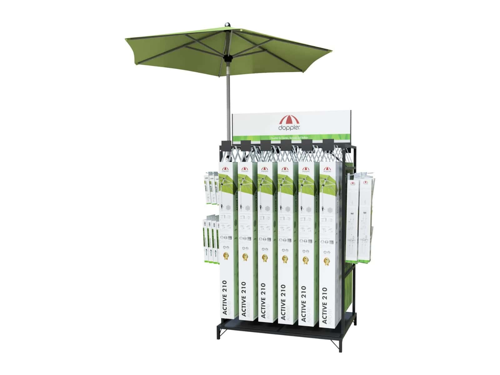 Hanging Rack, Grid Rack und das Mix-&-Match-Konzept sind nur einige der flexibel einsetzbaren Point-of-Sale-Systeme von doppler für den Fachhandel. Kompakte, aber vor allem interaktive Präsentationslösungen entwickeln sich zunehmend zu echten Verkaufsverstärkern am POS. Neben den flexiblen Warenträgern setzt doppler gezielt auf zusätzliche Informationsquellen: QR-Codes, Videos direkt am Produkt oder Karton, weiterführende Produktinfos und innovative AR-Anwendungen ermöglichen es dem Endkunden, den zukünftigen Sonnenschirm emotional und unmittelbar im Handel zu erleben.