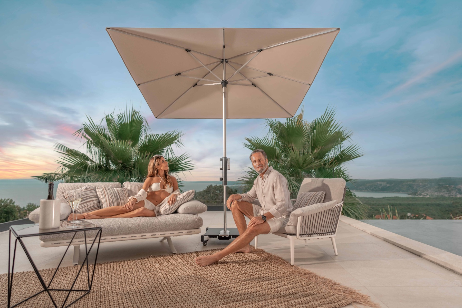 doppler parasols stand for the highest standards of product quality and functionality. The large selection of matching seat covers makes it possible to design the balcony or terrace stylishly from a single mould.