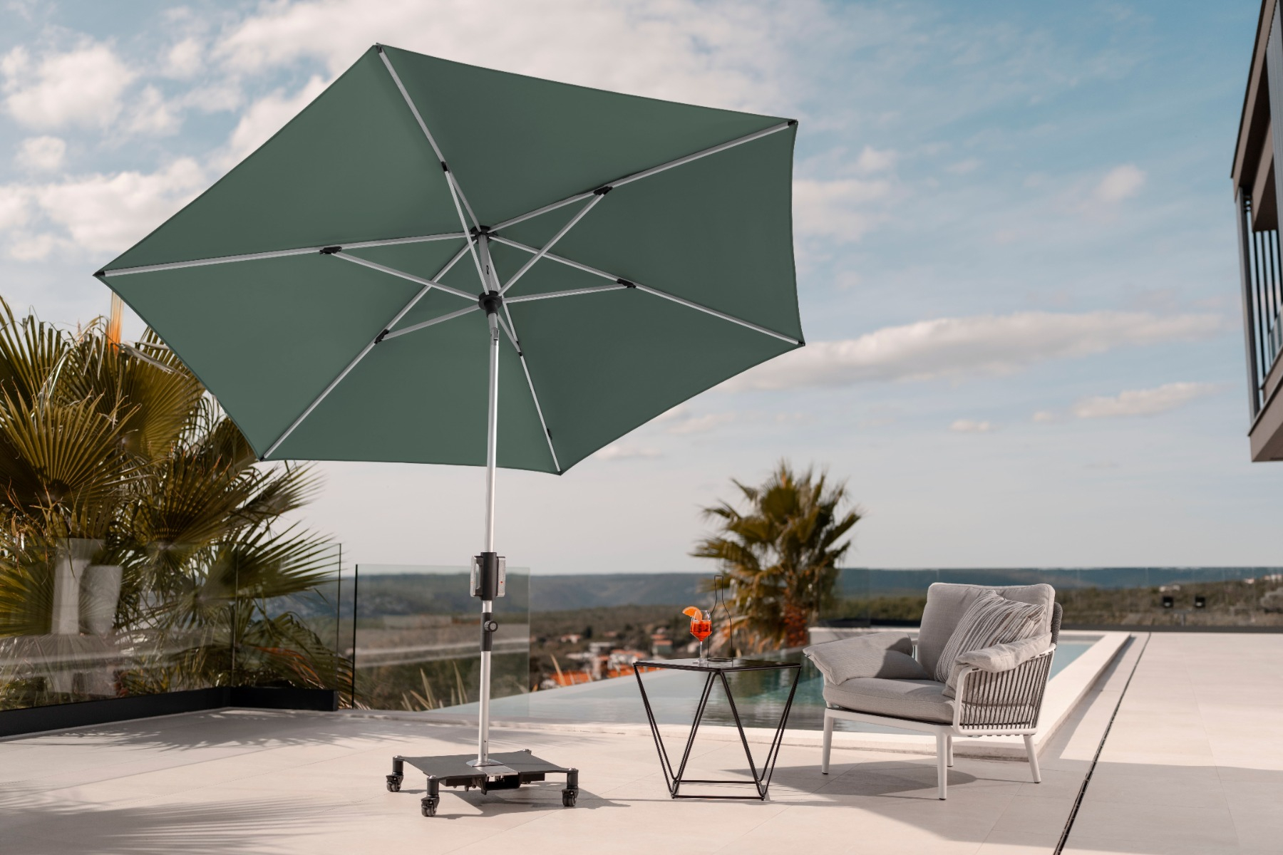 Doppler offers an extensive range of accessories for every garden umbrella, including innovative bases and mounting solutions, high-quality protective covers, and various accessories.