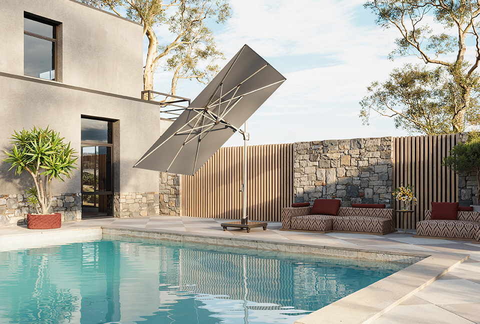 The parasols in the doppler range are characterised by their technical refinements, their high quality and their clear design. Many models feature the useful "one-hand operation", which guarantees uncomplicated opening and closing of the parasol. The flexible cantilever umbrellas can also be swivelled effortlessly through 360 degrees in just a few steps, so that they can be optimally adjusted to the respective position of the sun.